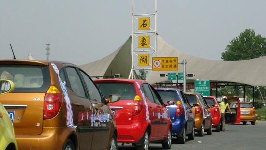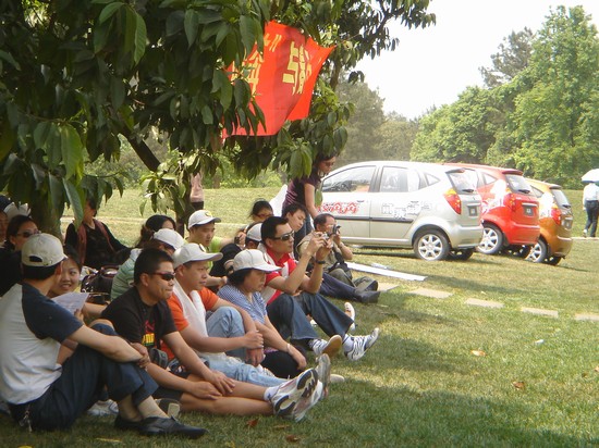 活动从始到终一直有条不紊的进行着。早上9点,参加活动的80余人(包括车友、厂家、媒体)从成都出发,经成雅高速公路,大约一个半小时后到达蒲江石象湖生态公园。前行途中,指挥车在前,服务车押后,以编号排列,并不忘沿途做展示宣传。在石象湖景区的大门处,远远就看见悬挂着“欢迎您的到来,长安奔奔的新老客户们”的布幅。前行的三辆车驶进了活动现场静态展示区,客户车辆则按序摆放在景区专用停车处。“长安奔奔,就是爱奔放”、“爱奔放,就一起来吧!”的横幅在阳光下、在四月的春天显得格外耀眼。